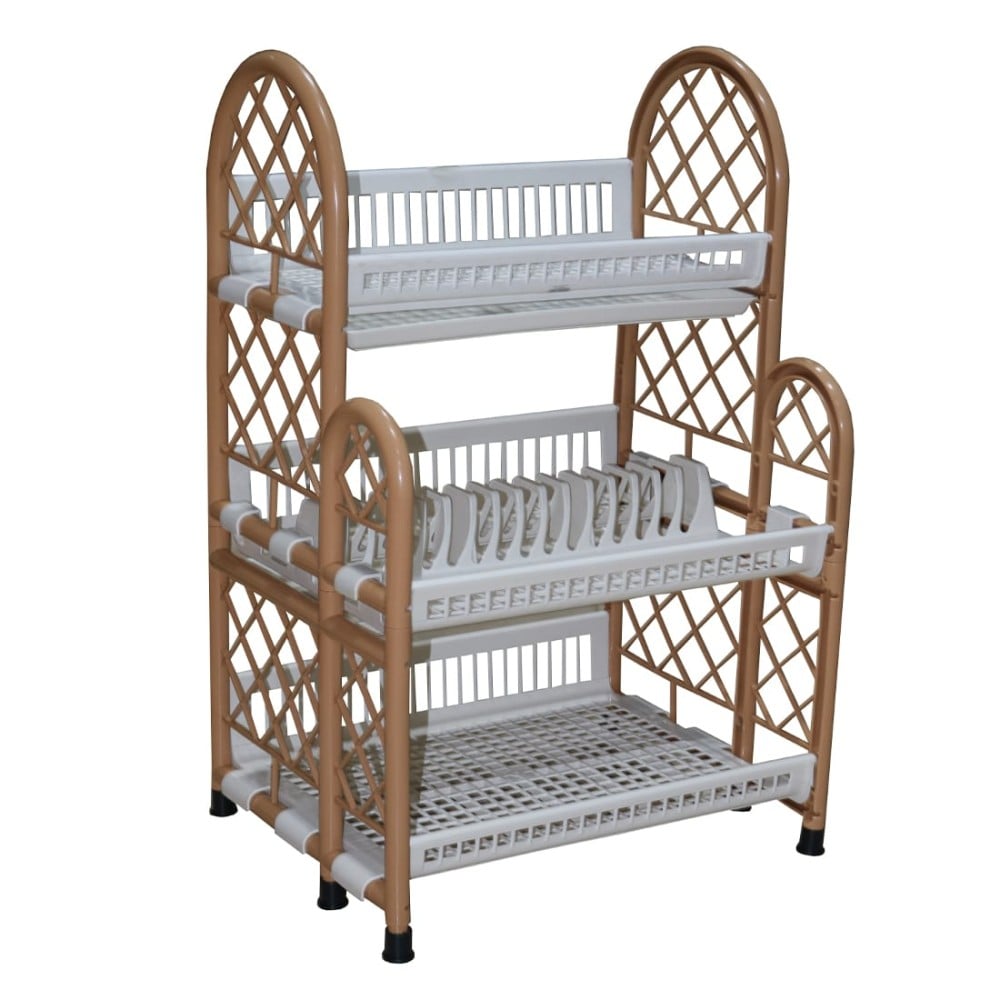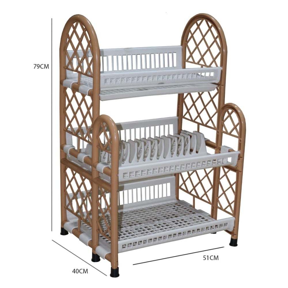 - (موفر للمساحة وبسعة كبيرة) كل مستوى من مستويات حامل تجفيف الصحون الثلاثة له وظيفة مختلفة ليوفر استخدام شامل لمساحة سطح الطاولة لديك.