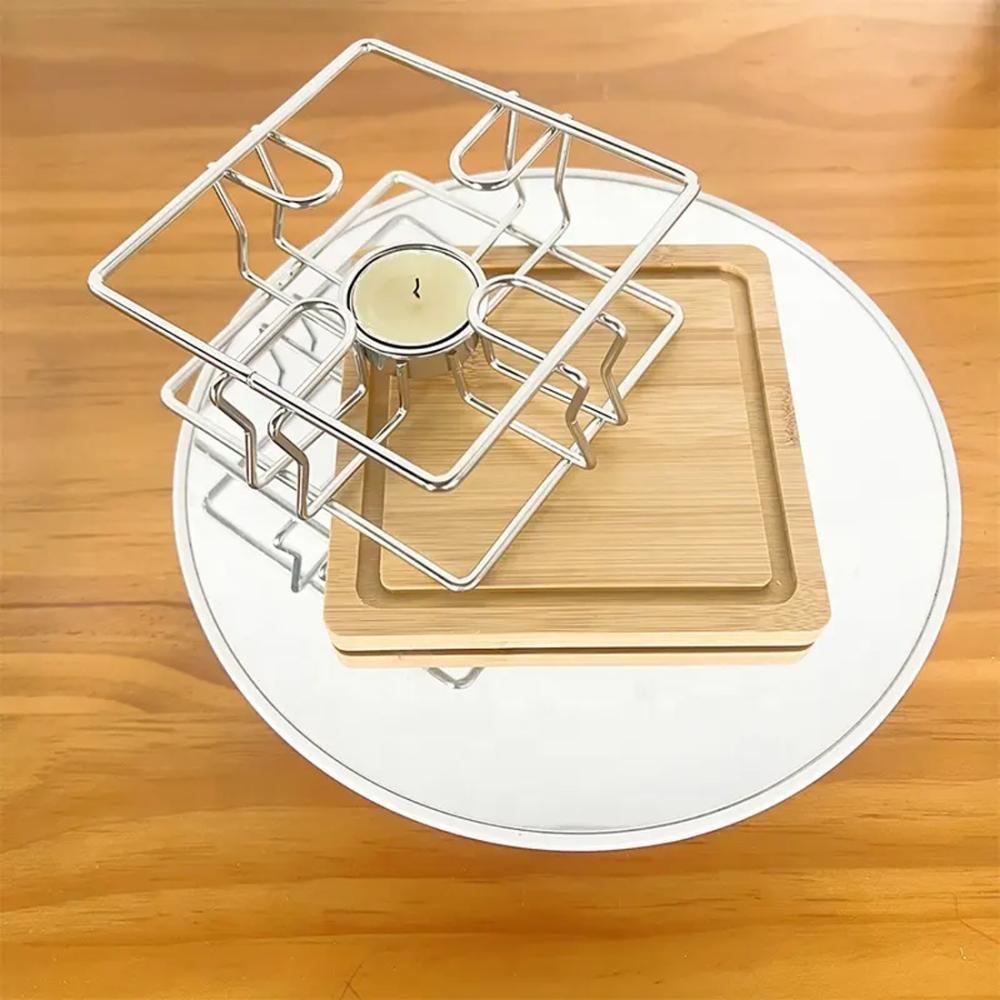 القاعدة المعدنية والخشبية مصممة لتحمل الحرارة الناتجة عن الشمعة بشكل آمن.