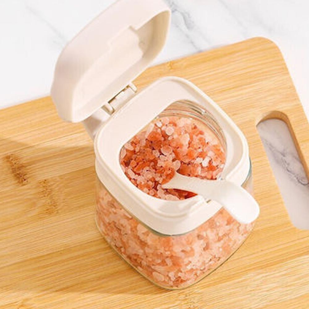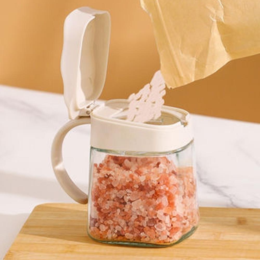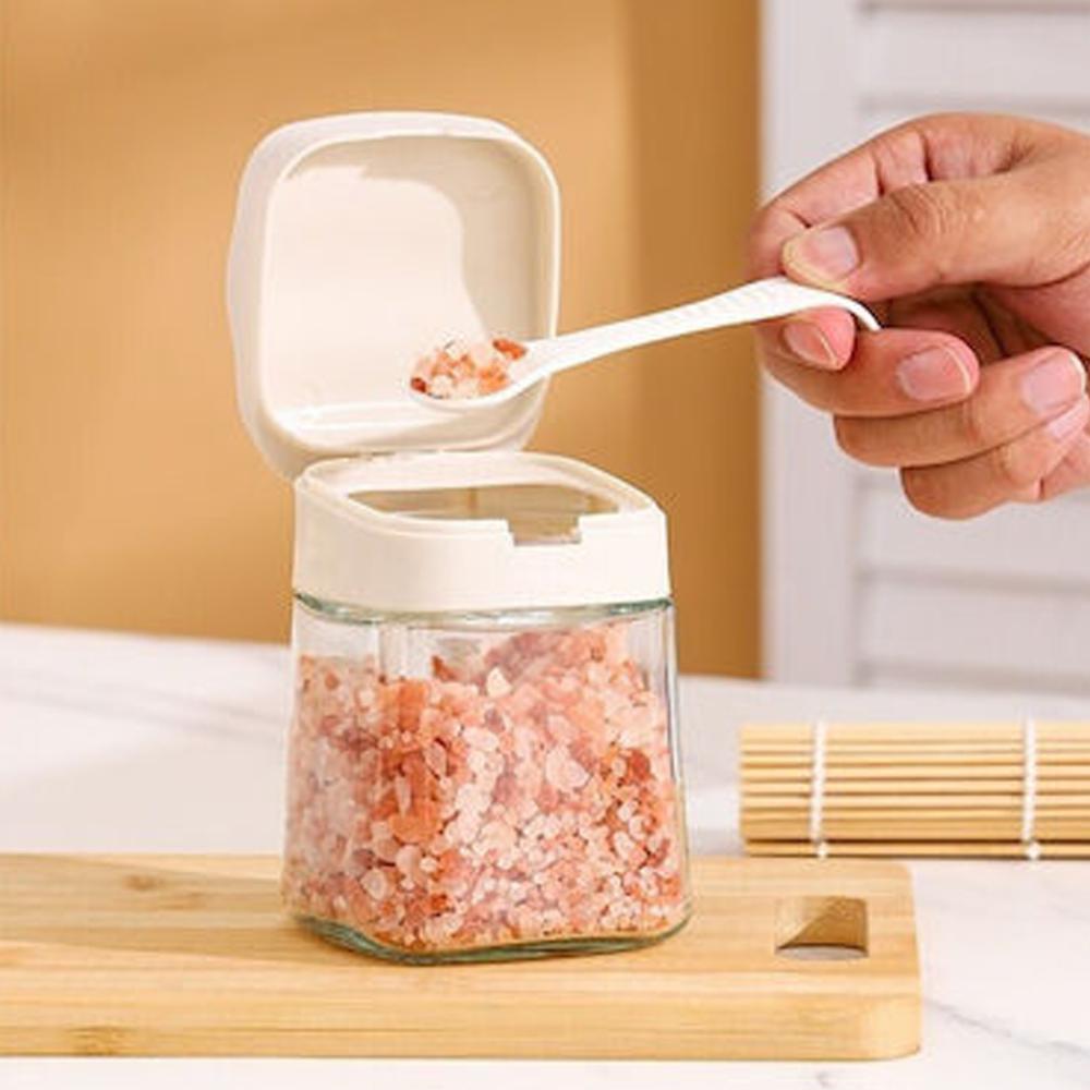 حافظة بهارات زجاج غطاء بلاستيك مع ملعقة بلاستيك