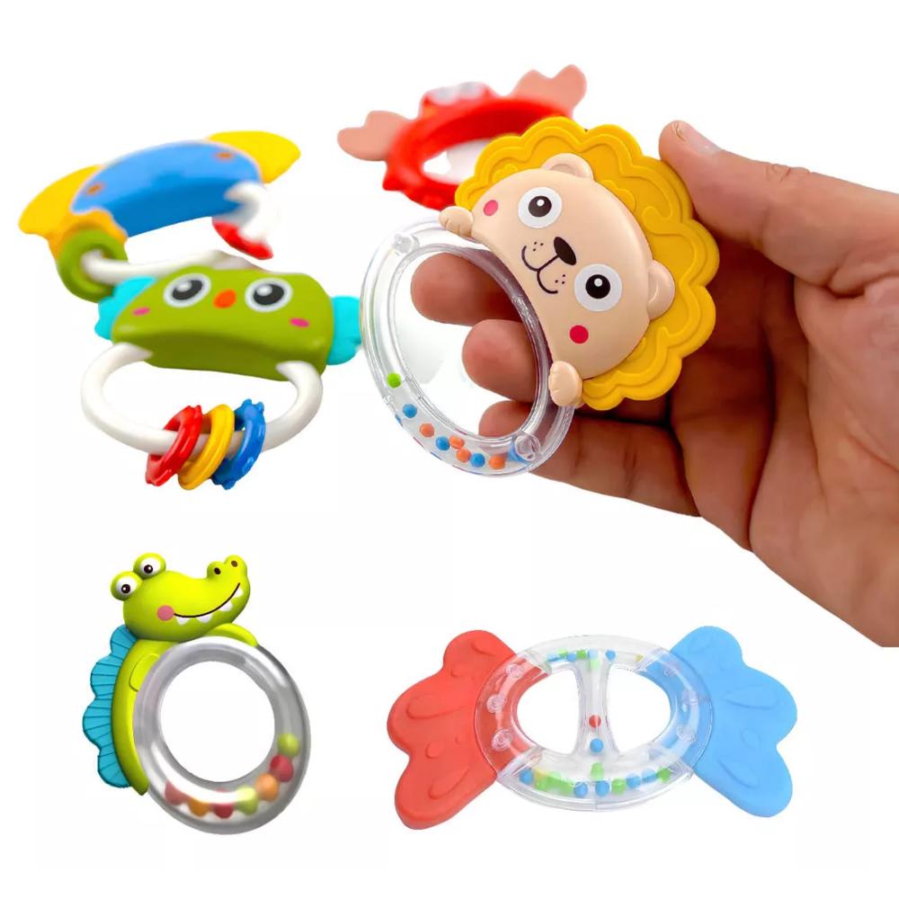 مجموعة خراخيش الأطفال التفاعلية تأتي بأشكال حيوانات لطيفة مثل الأسد، التمساح، الفيل، والسرطان، بالإضافة إلى تصميمات أخرى ممتعة. هذه الخراخيش مصنوعة من مواد آمنة تمامًا للأطفال، وتصدر أصواتًا ناعمة تعزز التطور السمعي والحسي للرضيع.