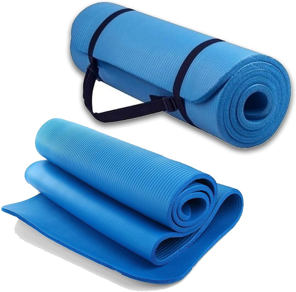 سجادة اليوغا أو التمرين غير قابلة للانزلاق، سجادة اليوغا مع حزام متضمنة بساط تمرين بسمك 10 مم مثالية ، البيلاتس، اليوغا، والعديد من التدريبات المنزلية الأخرى, أزرق 100235