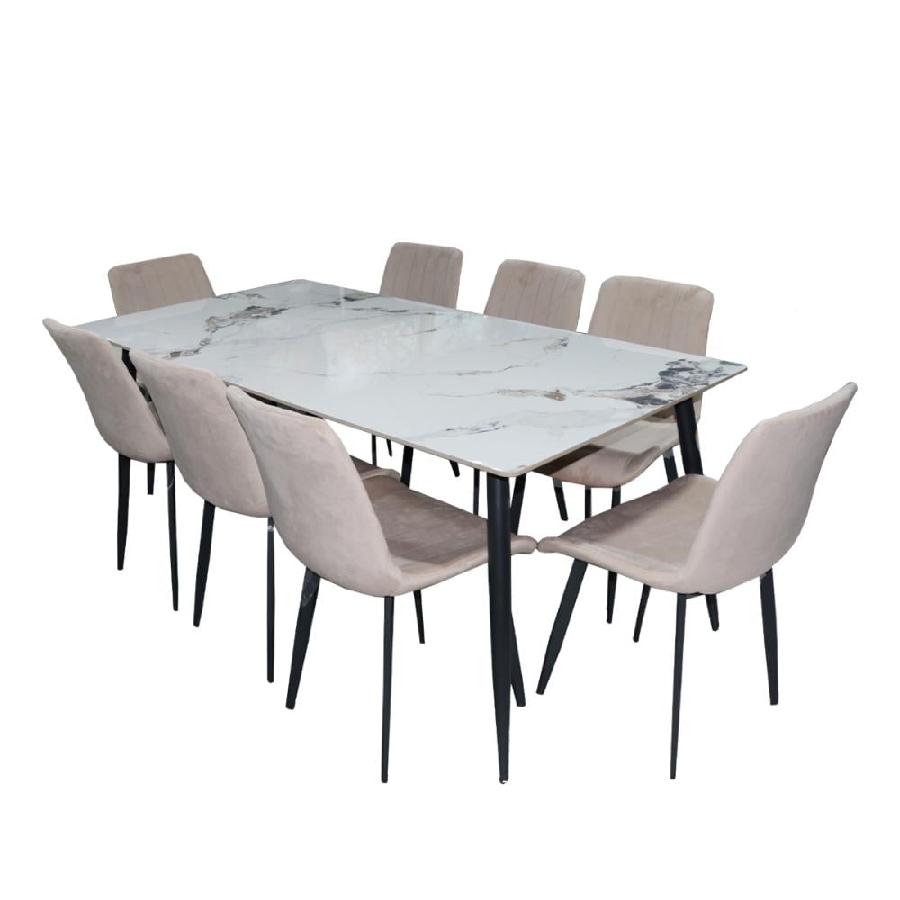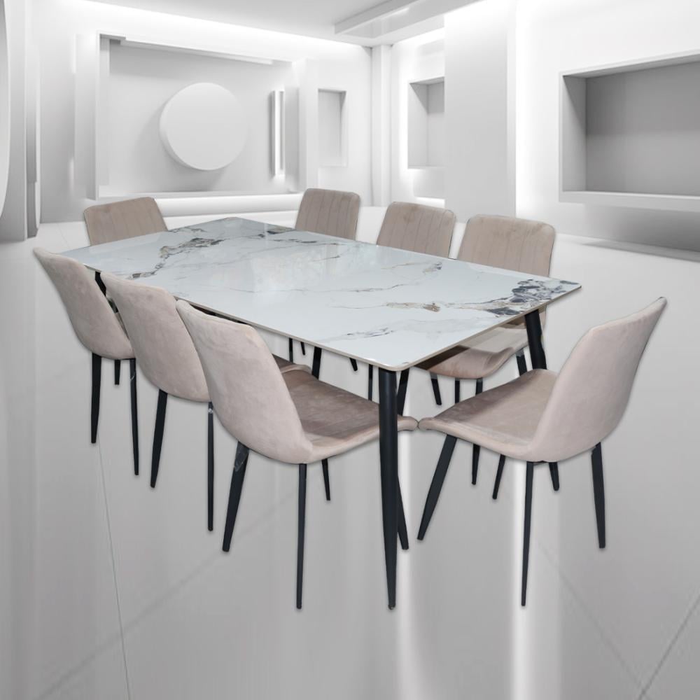 طقم طاولة سيراميك رمادي مع 8 كراسي بيج 180*90*6 سم