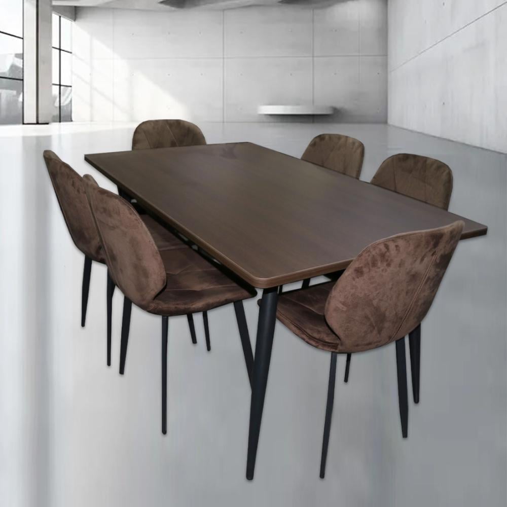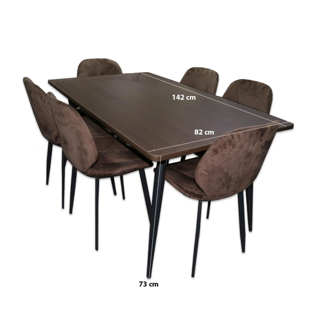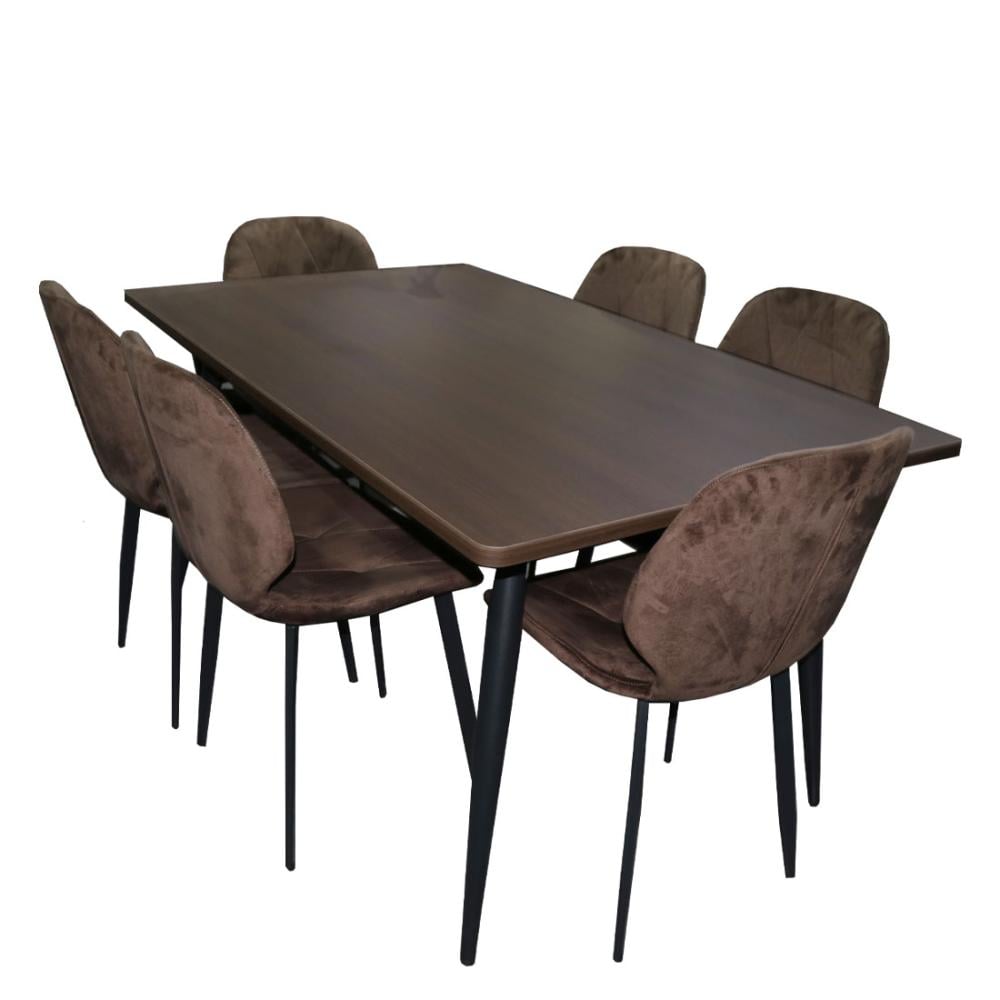 طقم طاولة خشب بني مع 6 كراسي بني 150*90*3 سم