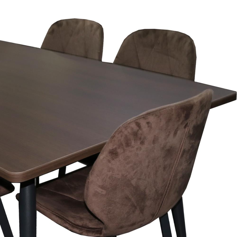 - الألوان: طاولة وكراسي بلون بني متناغم مع أرجل سوداء.