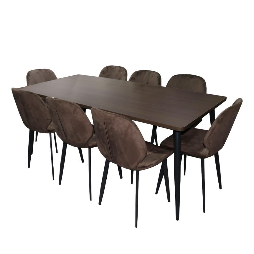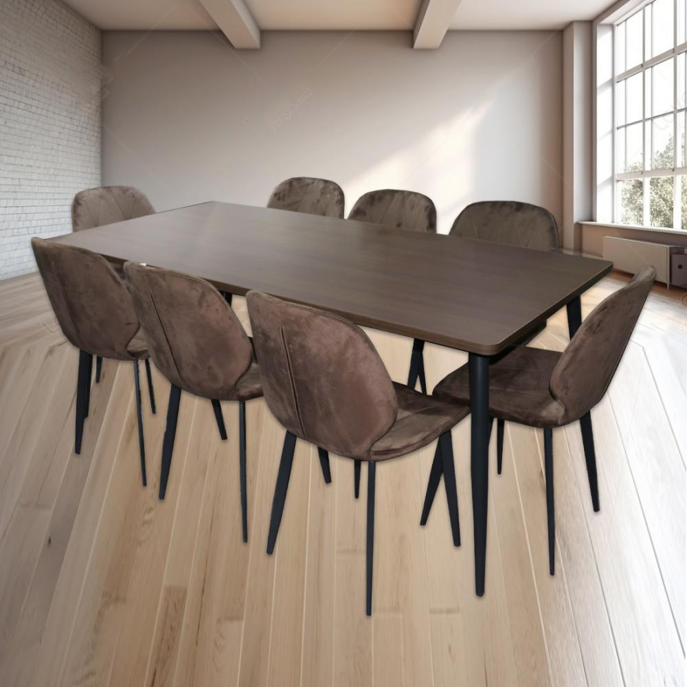 طقم طاولة طعام خشب بني 180×90×6 سم مع 8 كراسي بني – تصميم فاخر لعائلة كبيرة ولمناسباتك الخاصة (لا يشمل التركيب)