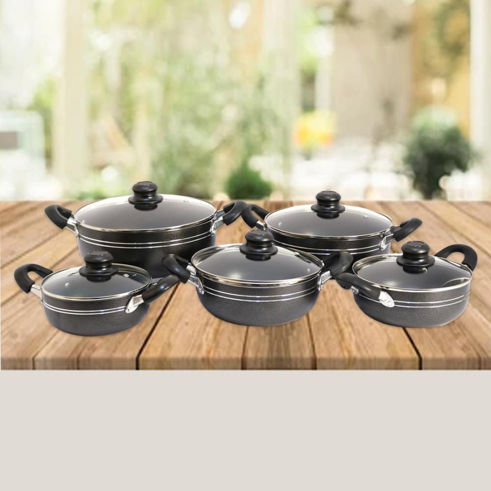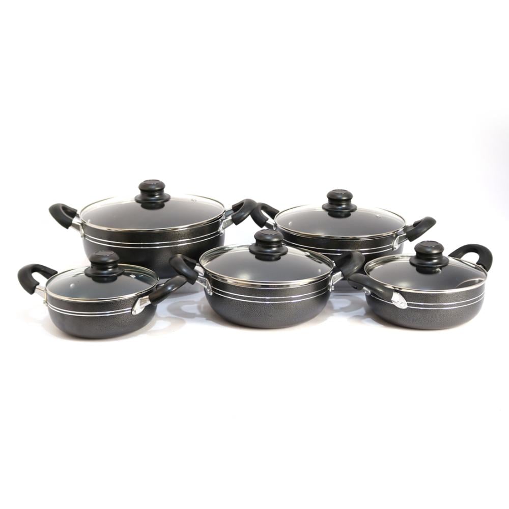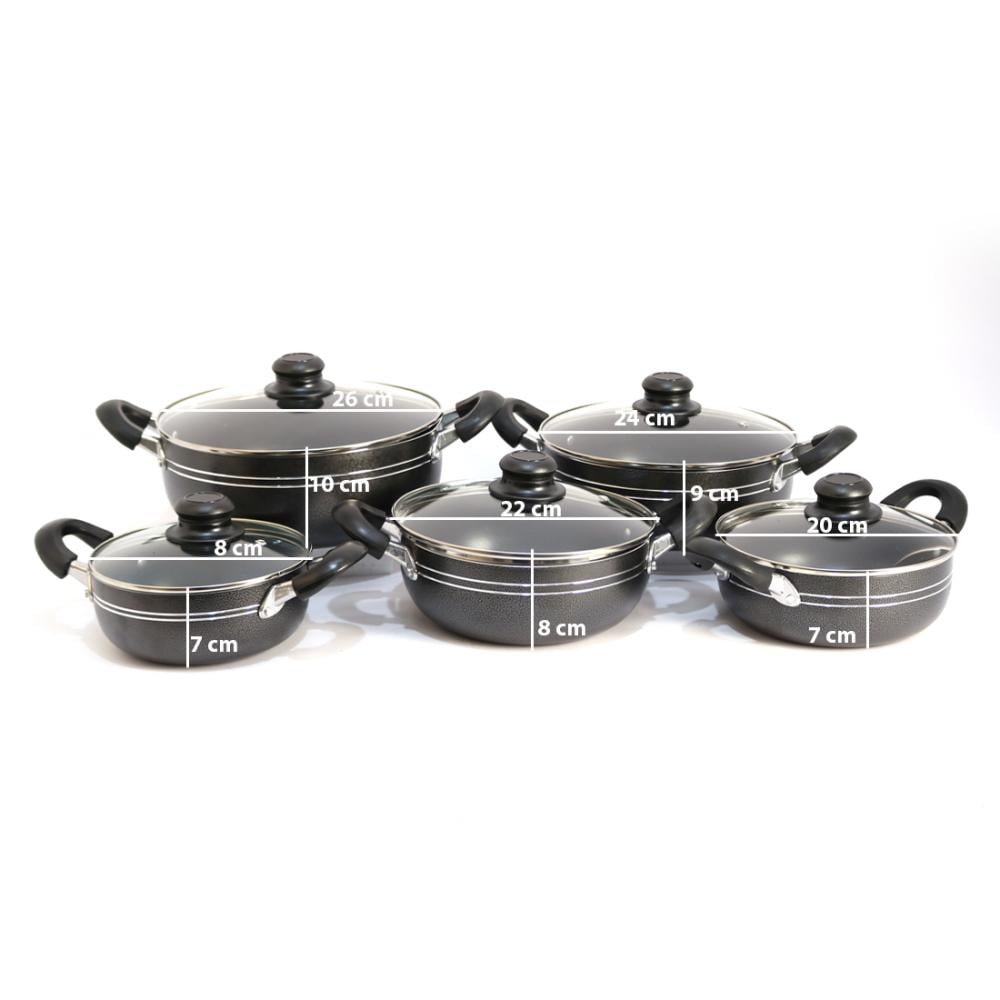 طقم قدور رخامي ملون غطاء زجاج 10 قطعة