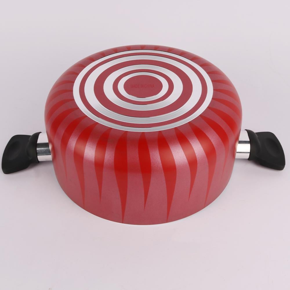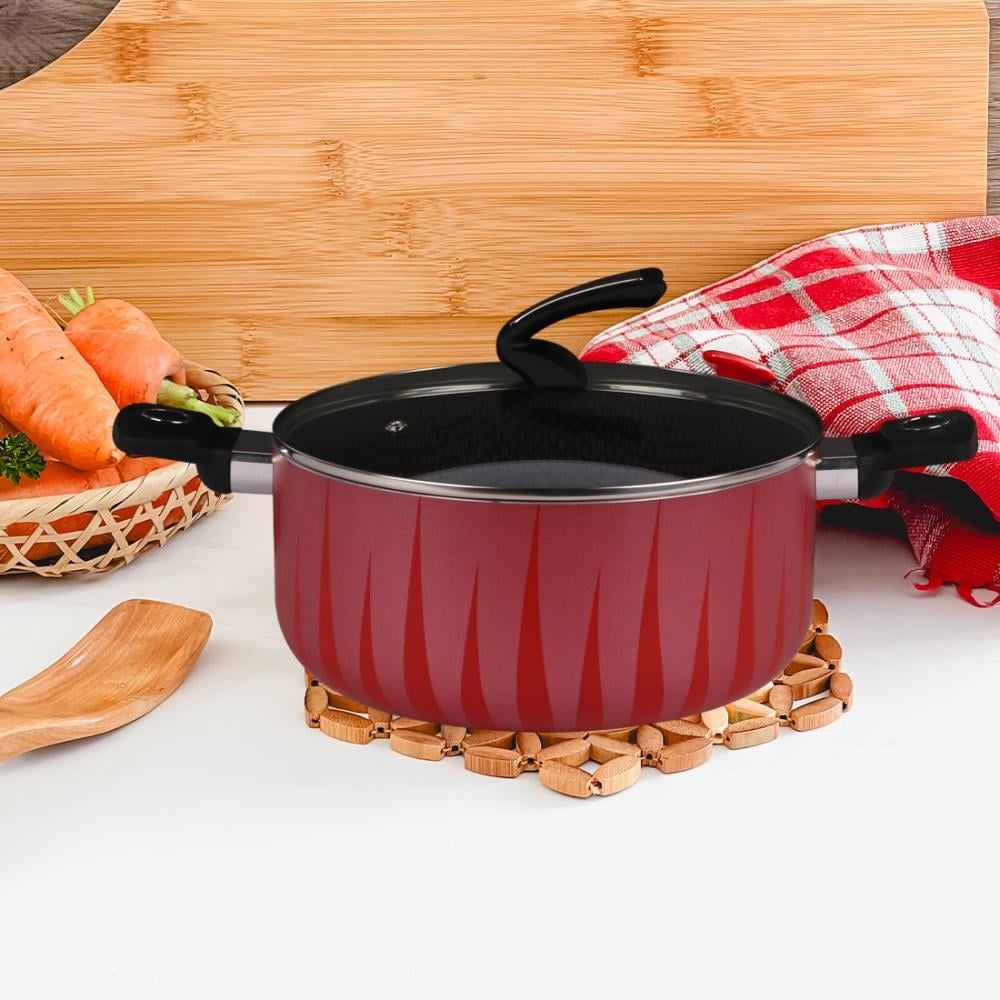 قدر بيدين غطاء زجاج احمر مخطط 22 سم