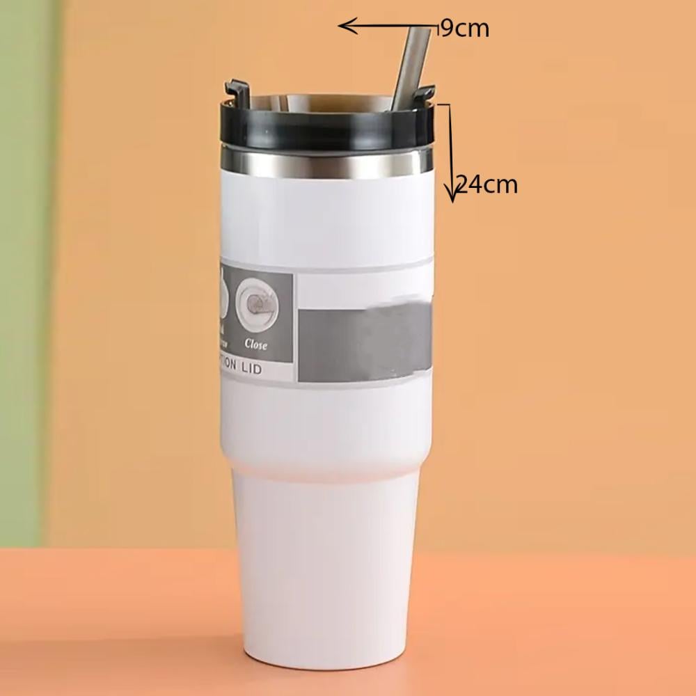 كوب حافظ حرارة استيل ابيض 900 مل مع مصاص