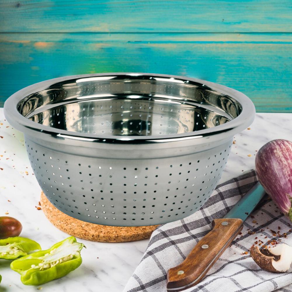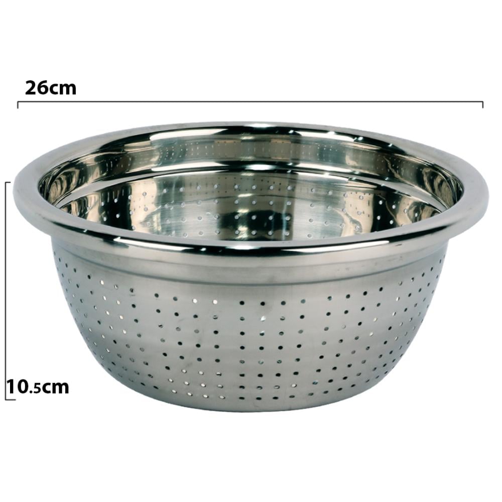 المصفاة العميقة من الستانلس ستيل هي أداة مطبخ أساسية للتصفية والتصفية بكفاءة عالية. مصنوعة من ستانلس ستيل عالي الجودة، بقطر 26 سم، مما يجعلها مثالية لغسل الخضروات، تصفية المعكرونة، شطف الأرز، والمزيد. تتميز بثقوب دقيقة تتيح تصريف المياه بسرعة مع الحفاظ على الطعام داخلها.