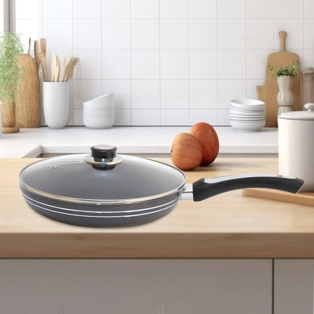 مقلاة رخامي مدور يد طويل بغطاء زجاج مقاس 20 سم