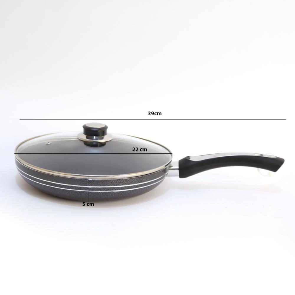 مقلاة مدور يد طويل بغطاء زجاج مقاس 22 سم