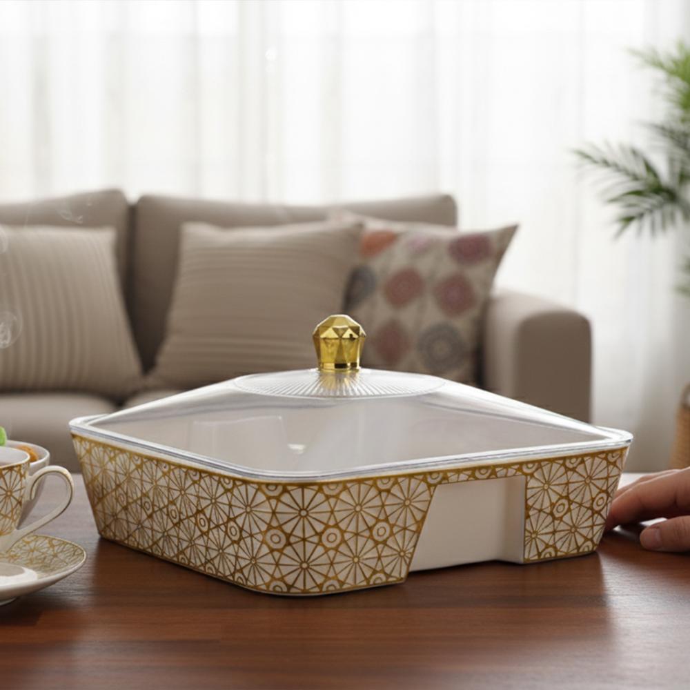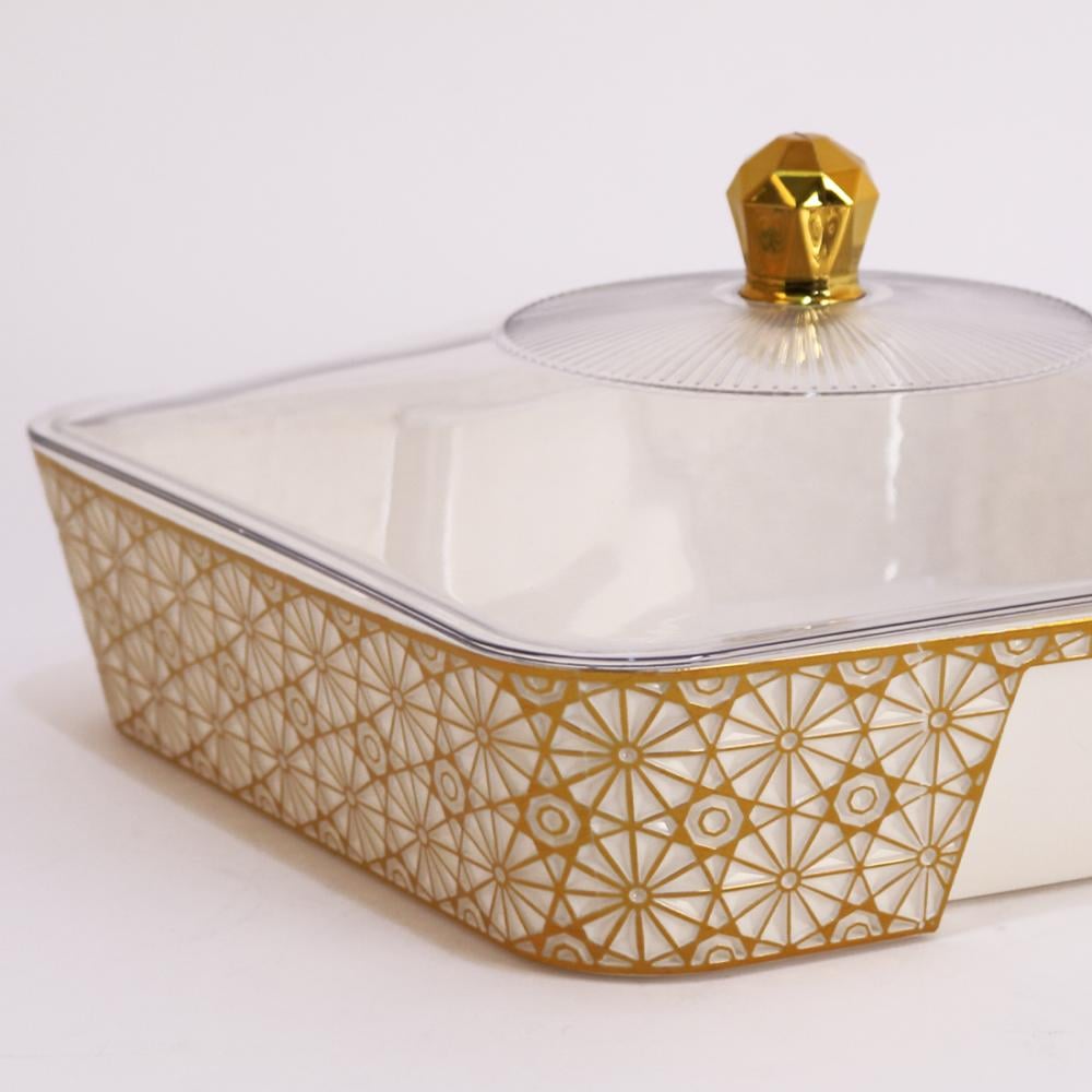 صحون فواكة بلاستيك مربع مذهب
