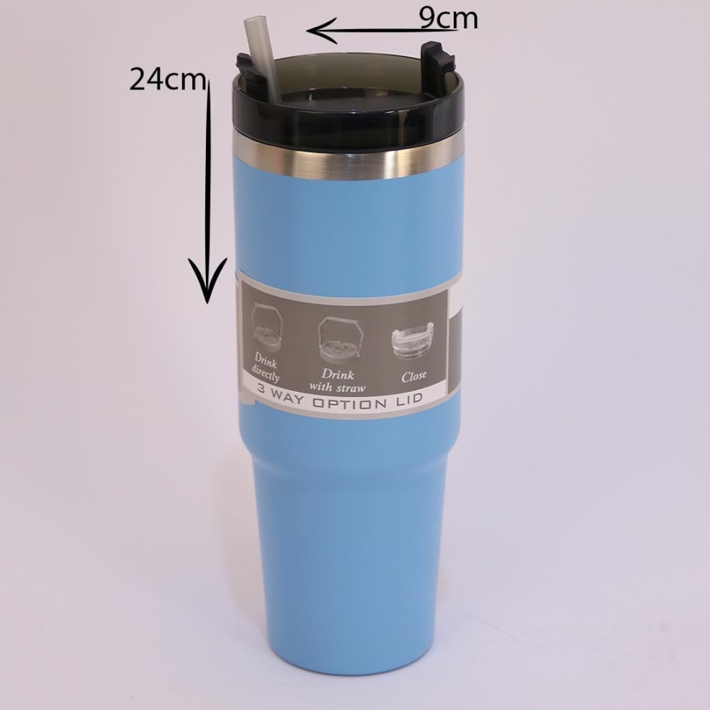 كوب حافظ حرارة استيل ازرق فاتح 900 مل مع مصاص