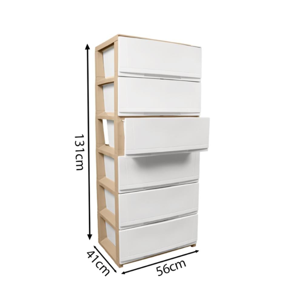 Classic Plastic Storage Drawers – 6 Tiers – White/Beige