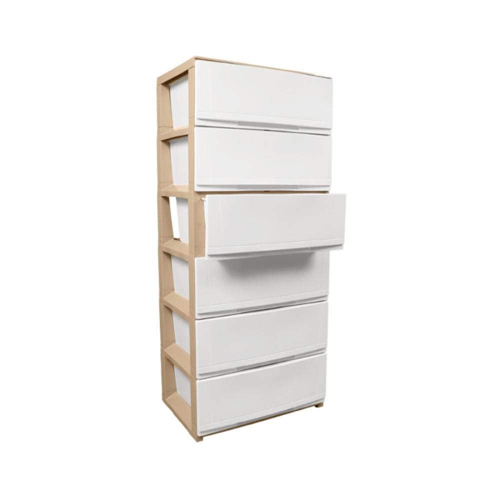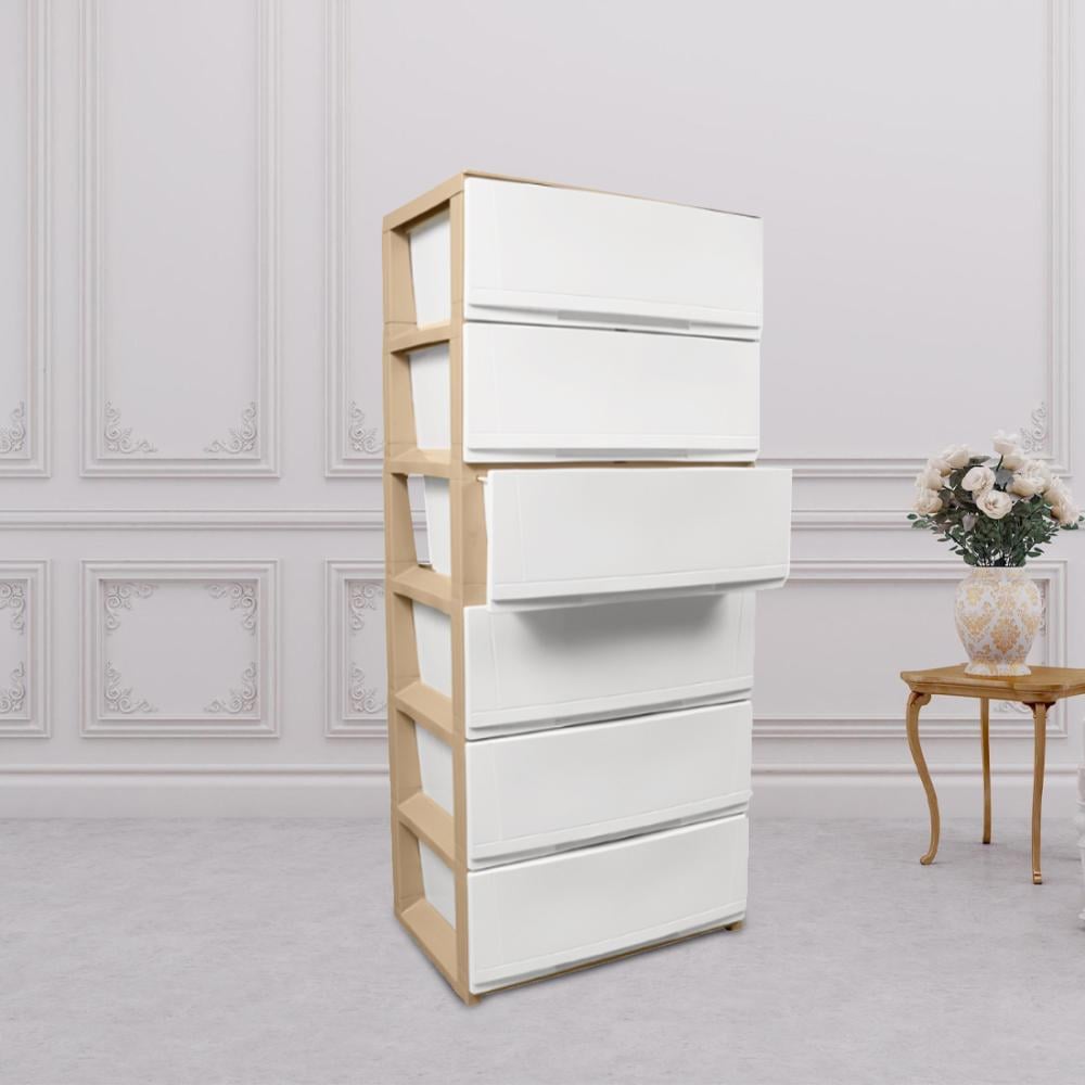 Add both organization and style to your home with this 6-tier classic plastic storage drawer unit. Featuring a clean white drawer front paired with a soft beige frame, this unit offers a modern, minimalist look that blends effortlessly into any room. Whether you need to store clothing, office supplies, toys, or personal items, this drawer system is a space-saving and highly functional solution for bedrooms, bathrooms, kids’ rooms, or home offices.