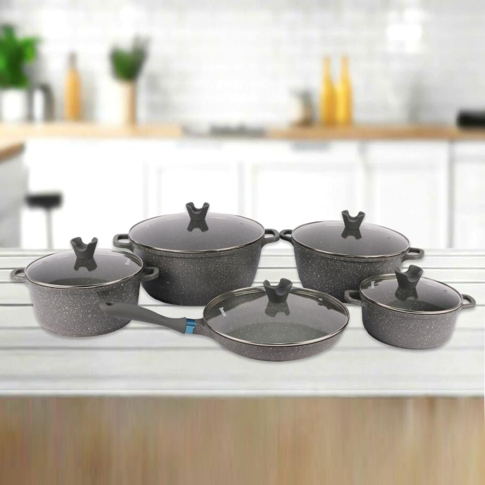 The Grey Granite Cookware Set from Sool Star is a premium collection of 10 essential kitchen pieces designed to meet all your cooking needs with style and functionality. This set features a sophisticated grey granite finish, non-stick coating, and durable construction for optimal heat distribution and cooking performance. Whether you’re a seasoned chef or a home cook, this cookware set offers the versatility, safety, and elegance needed to prepare meals effortlessly and efficiently.