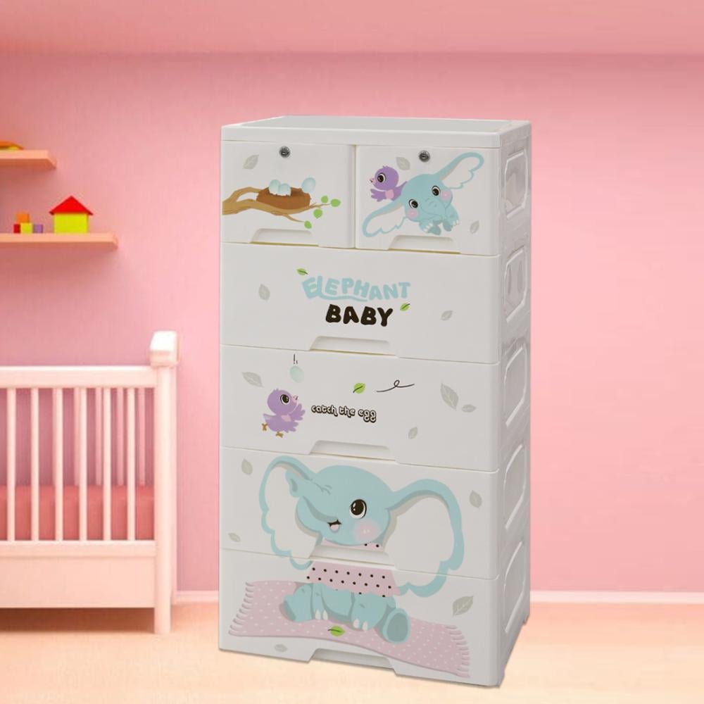 If you're looking for a cute, practical, and safe storage solution for your child’s belongings, the Elephant Baby 5-Drawer Cabinet by Sool Star is the perfect choice. With ample space, a charming design, and durable materials, it ensures everything stays organized while adding a fun touch to your kid’s room. Get yours today! 💙🐘