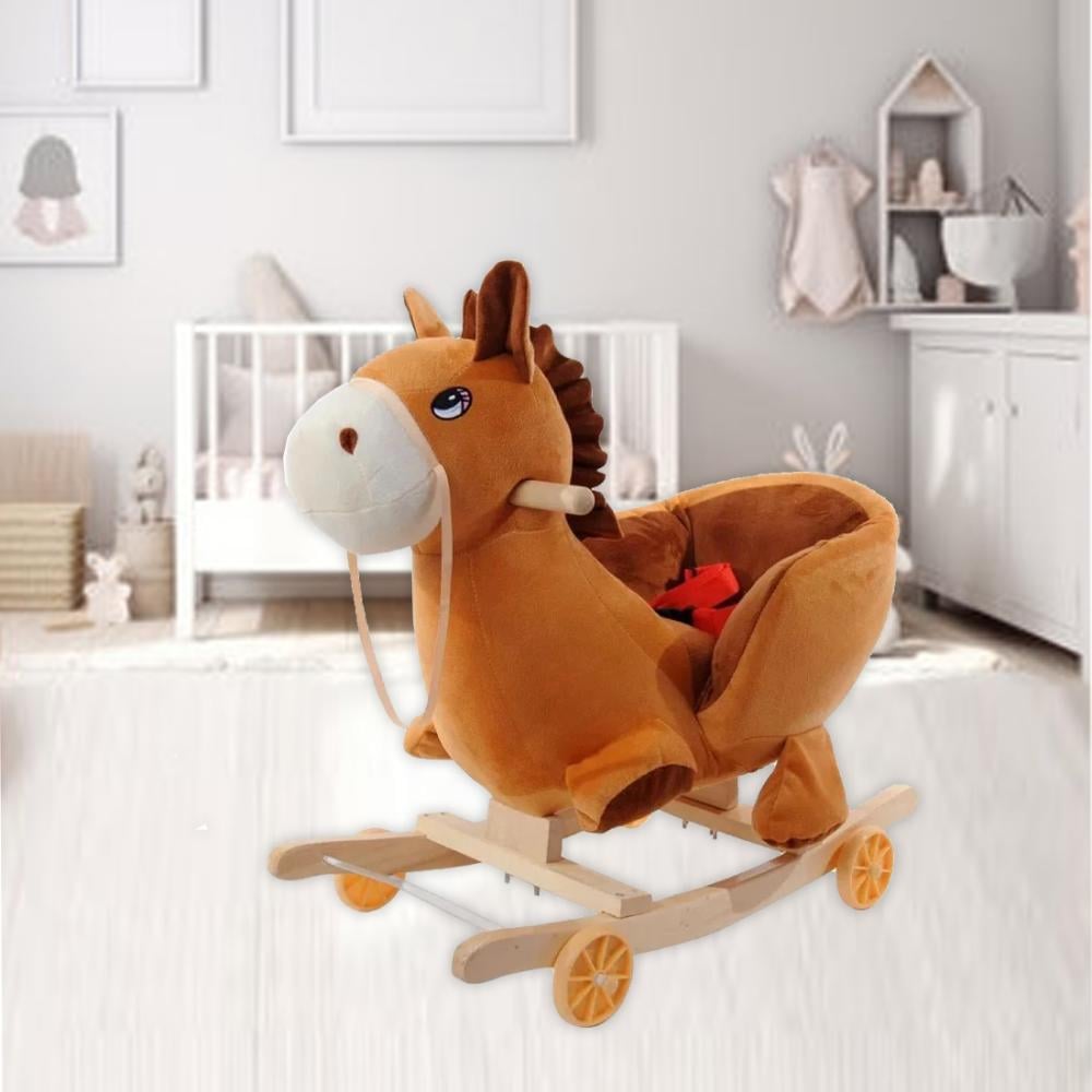 Let your child gallop into a world of fun and imagination with the Wooden Rocking Horse with Wheels. This adorable and friendly horse design brings joy to every ride, offering both rocking motion and push-along mobility thanks to the built-in wheels. Crafted with care from high-quality wood and covered in ultra-soft plush fabric, this toy is not only visually charming but also exceptionally safe and comfortable for toddlers. It’s the perfect blend of classic play and modern functionality, encouraging active movement while keeping your child secure and supported.